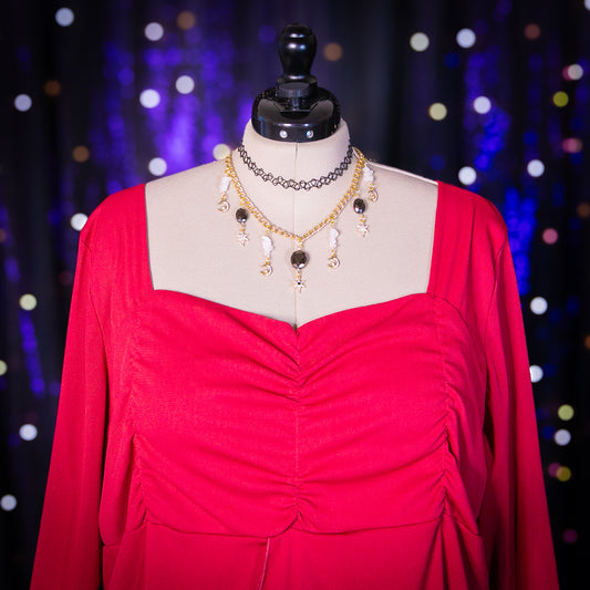 Inspired by the moody and dark palette of the Scorpio sign, this collection is full of black and deep gemstone hued pieces ranging from sizes L-5x+.