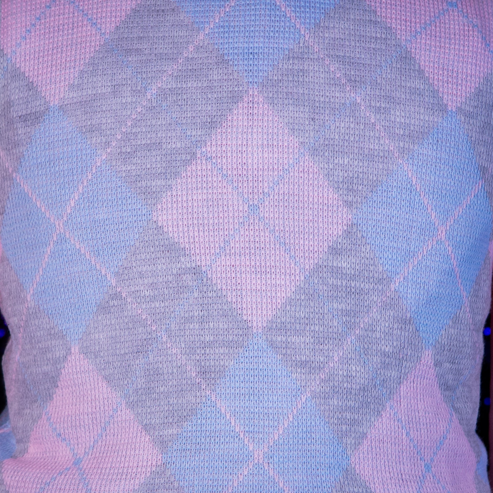 - Pattern: Pastel Blue and Pink Argyle Plaid