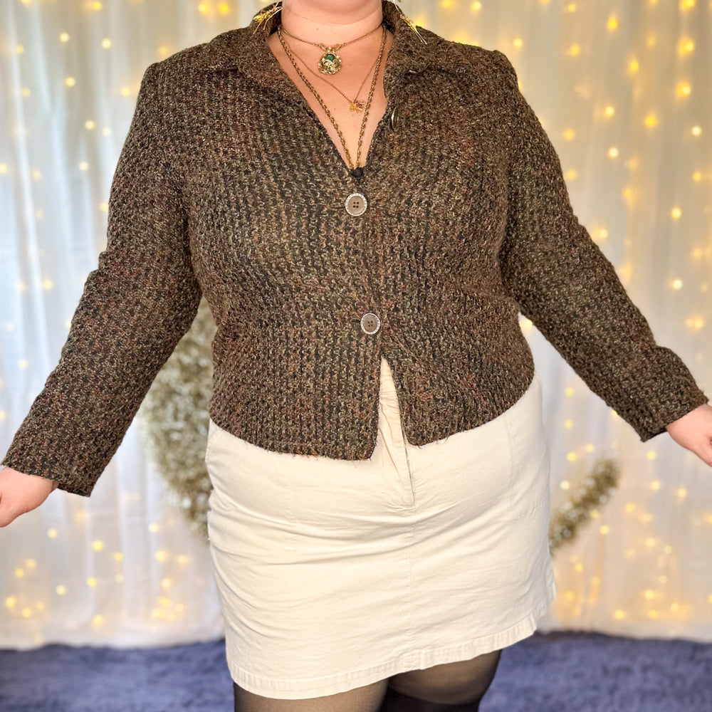 Vintage Y2K/00s khaki tan skort (skirt with shorts underneath with an above-the-knee fit. Skort has pockets and a zipper button closure at the front.