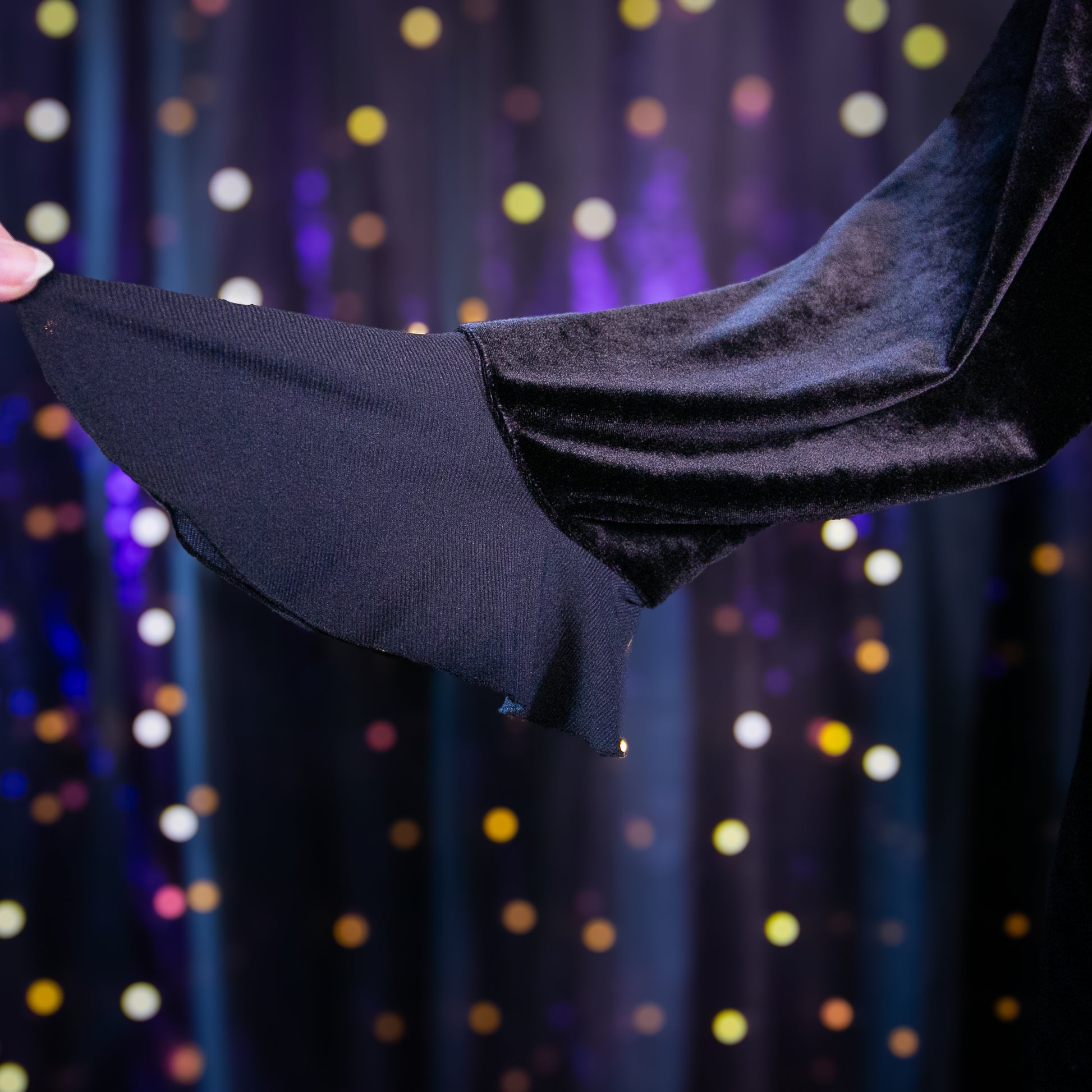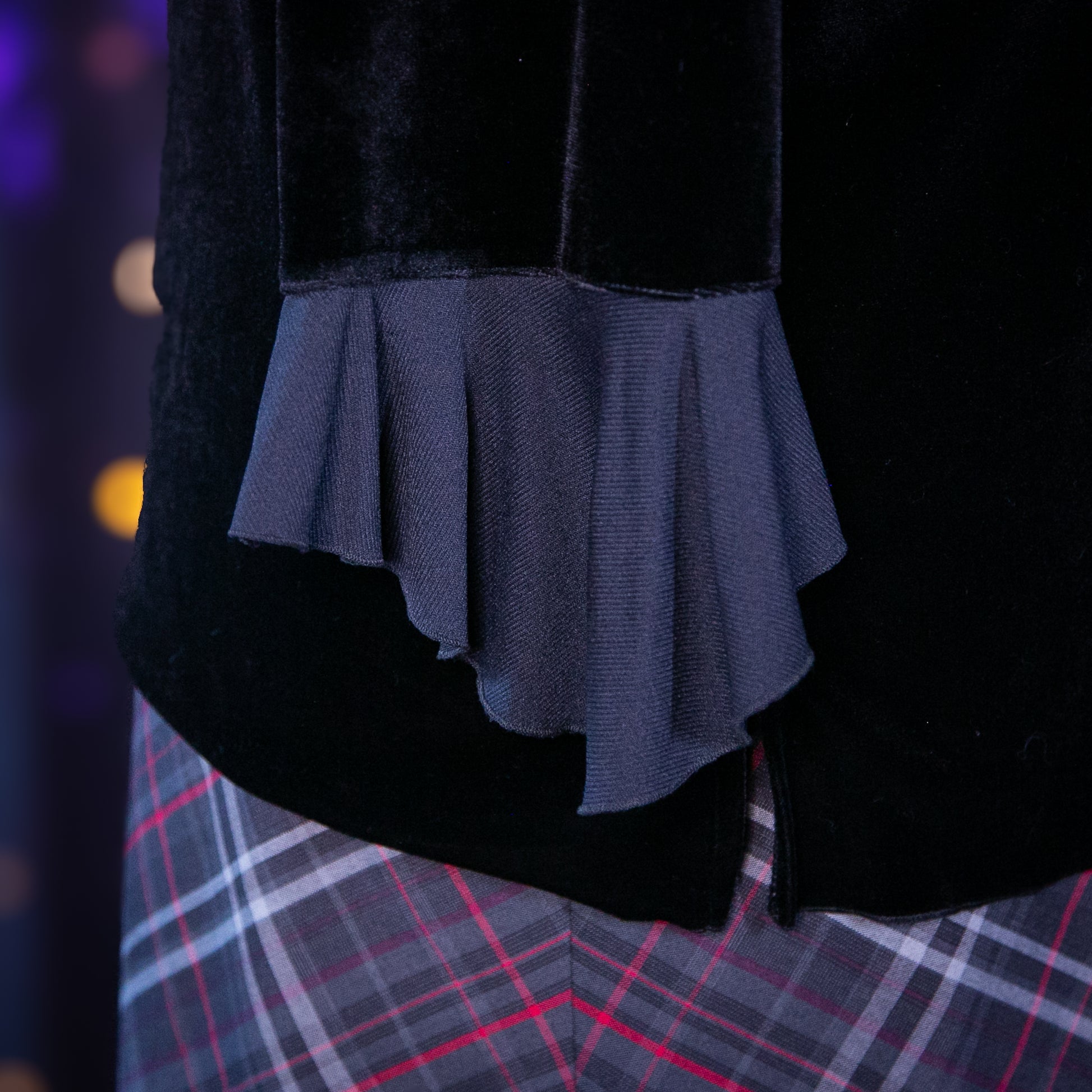- Features: Stretch Velvet Velour; Mesh Ruffle Trim Around Neckline; Mesh Flared Ruffle Sleeve Cuffs