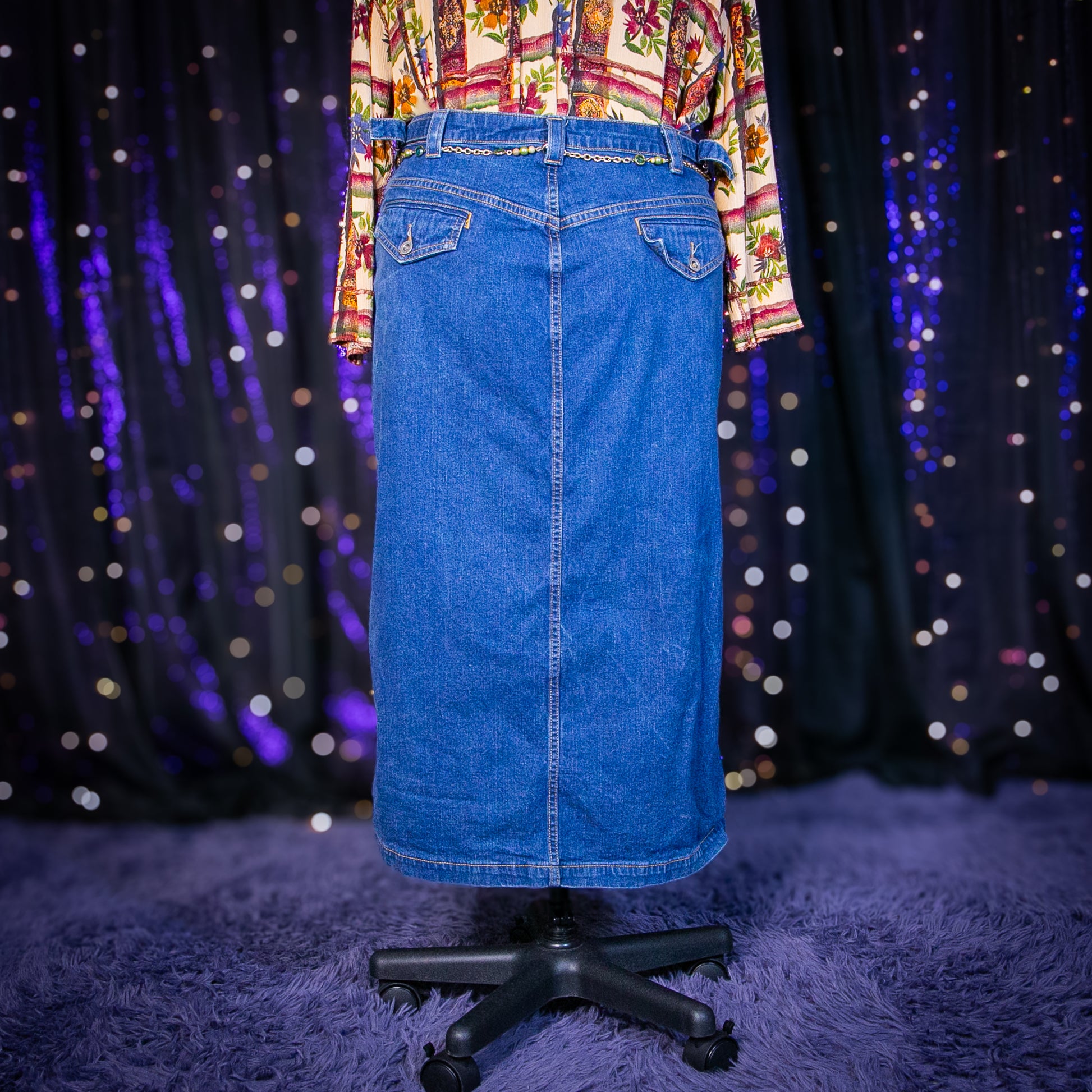 - Features: Silver Adjustable Buckles on Each Side of Waist; Back Skirt Slit