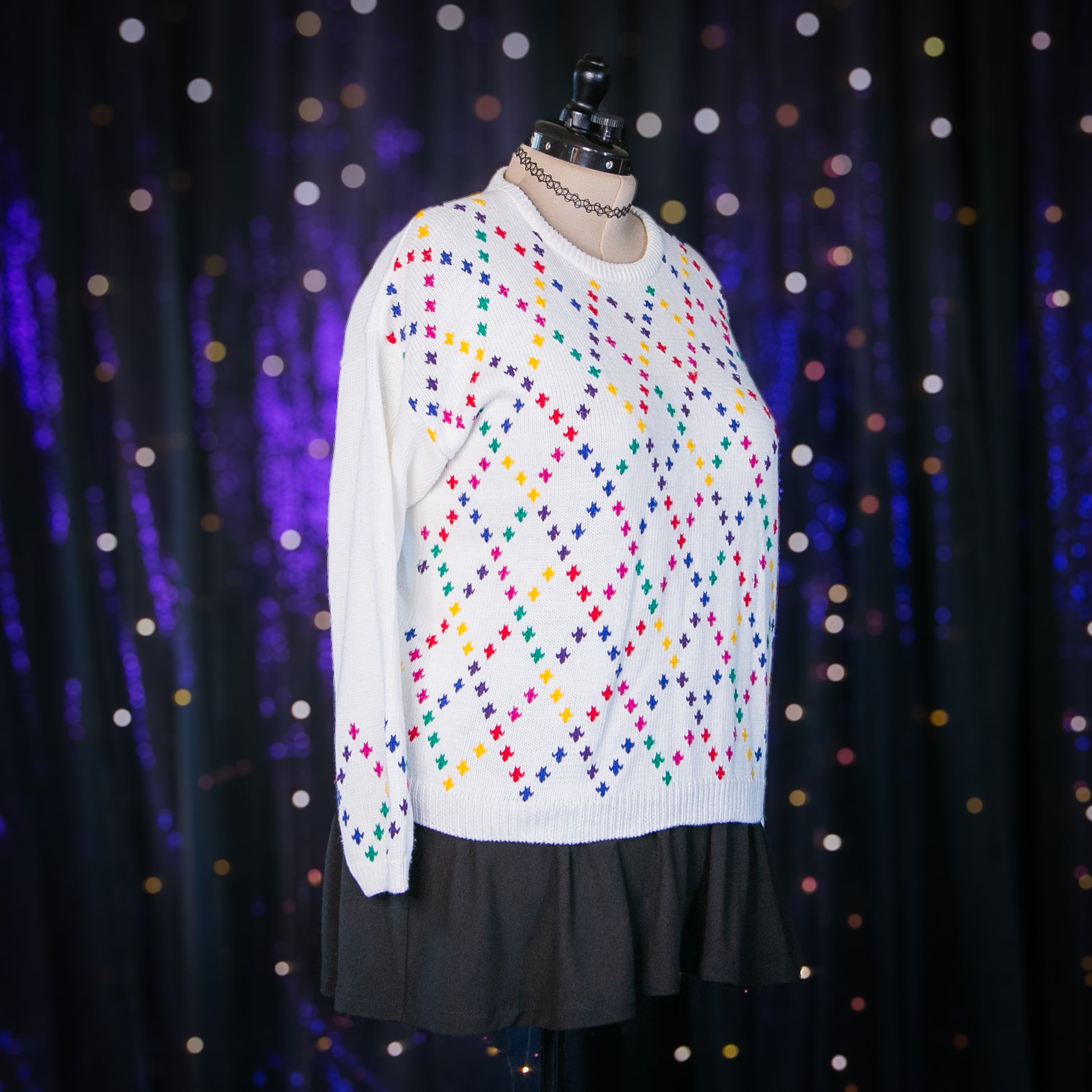 - Color: White with Multicolor including Purple, Blue, Green, Yellow, Pink, and Red