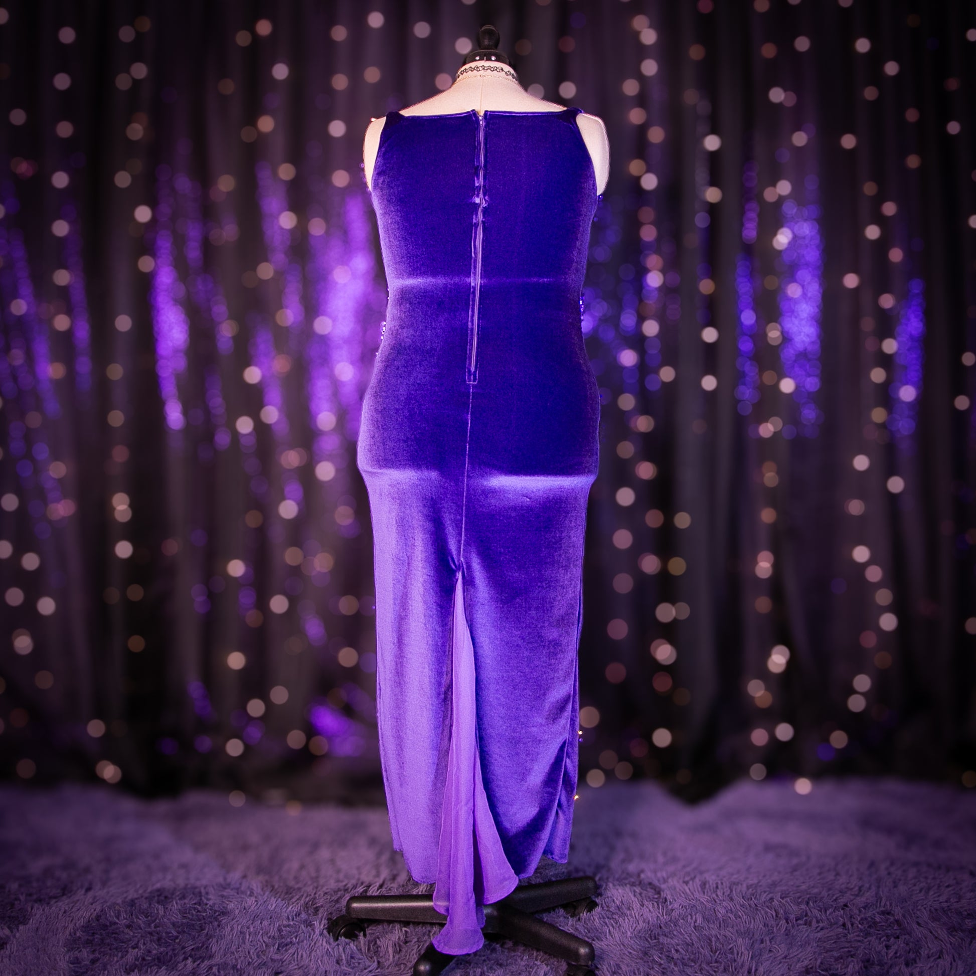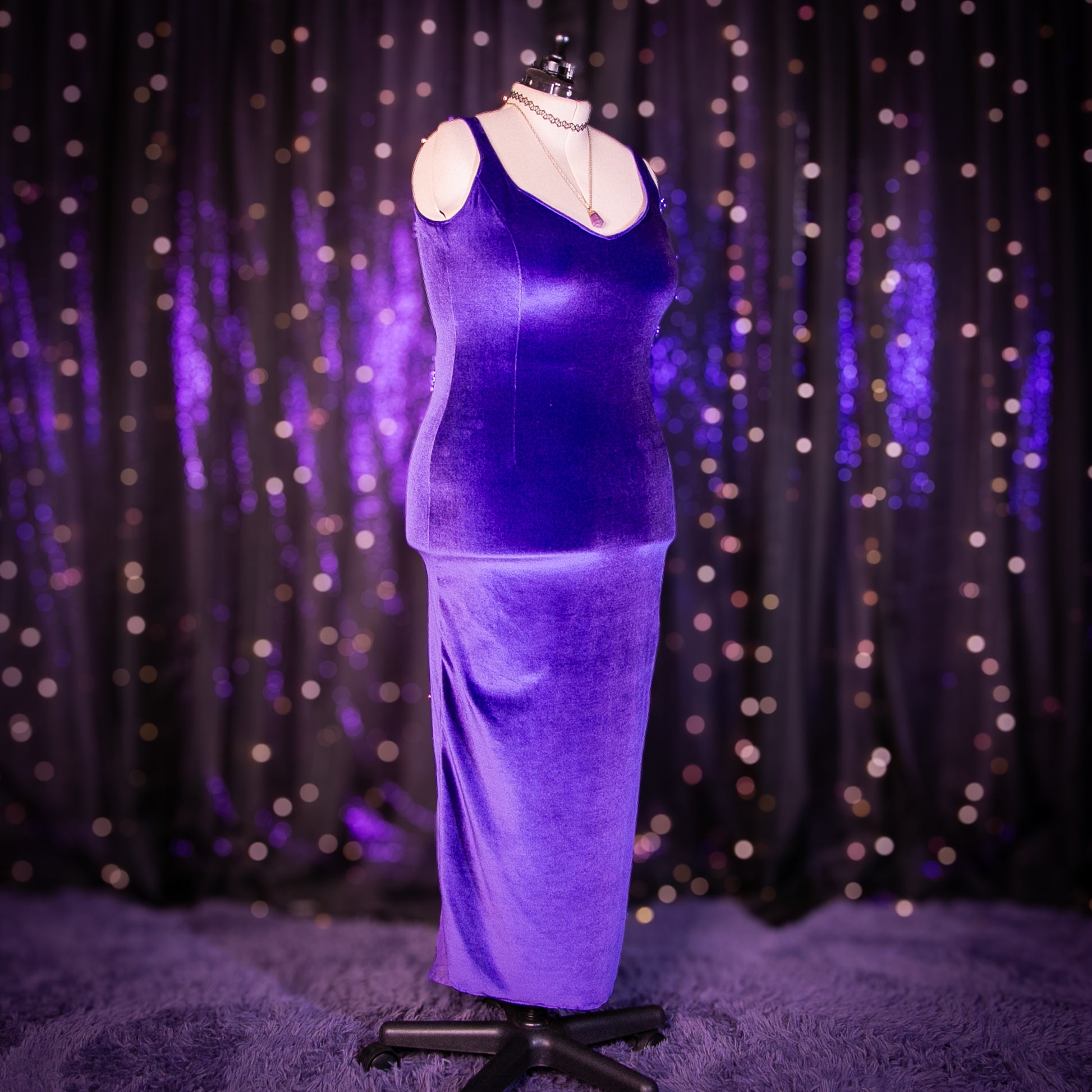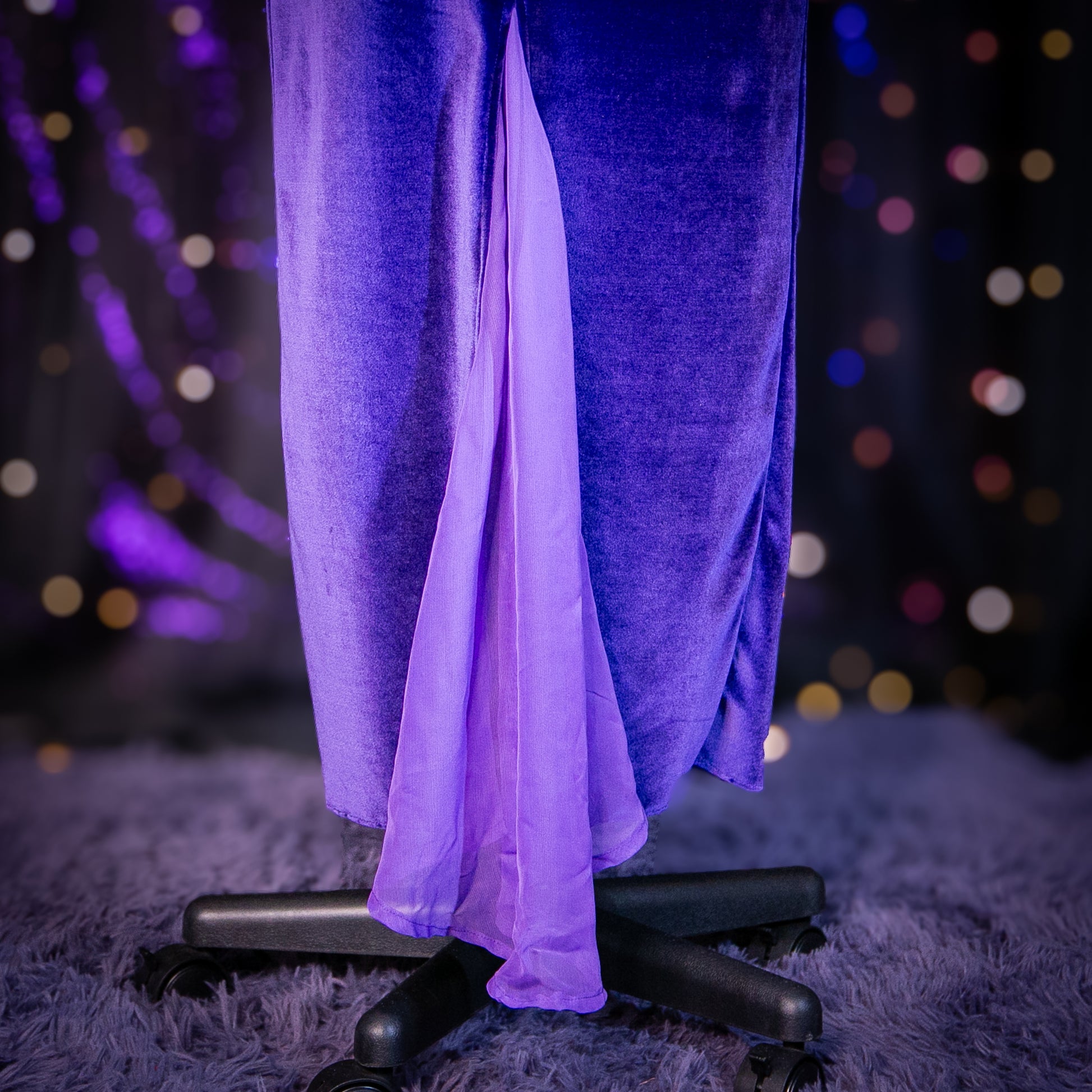 Purple velvet maxi length gown with Hex Girls vibes. Pair with a matching purple jacket for the ultimate Dusk costume.