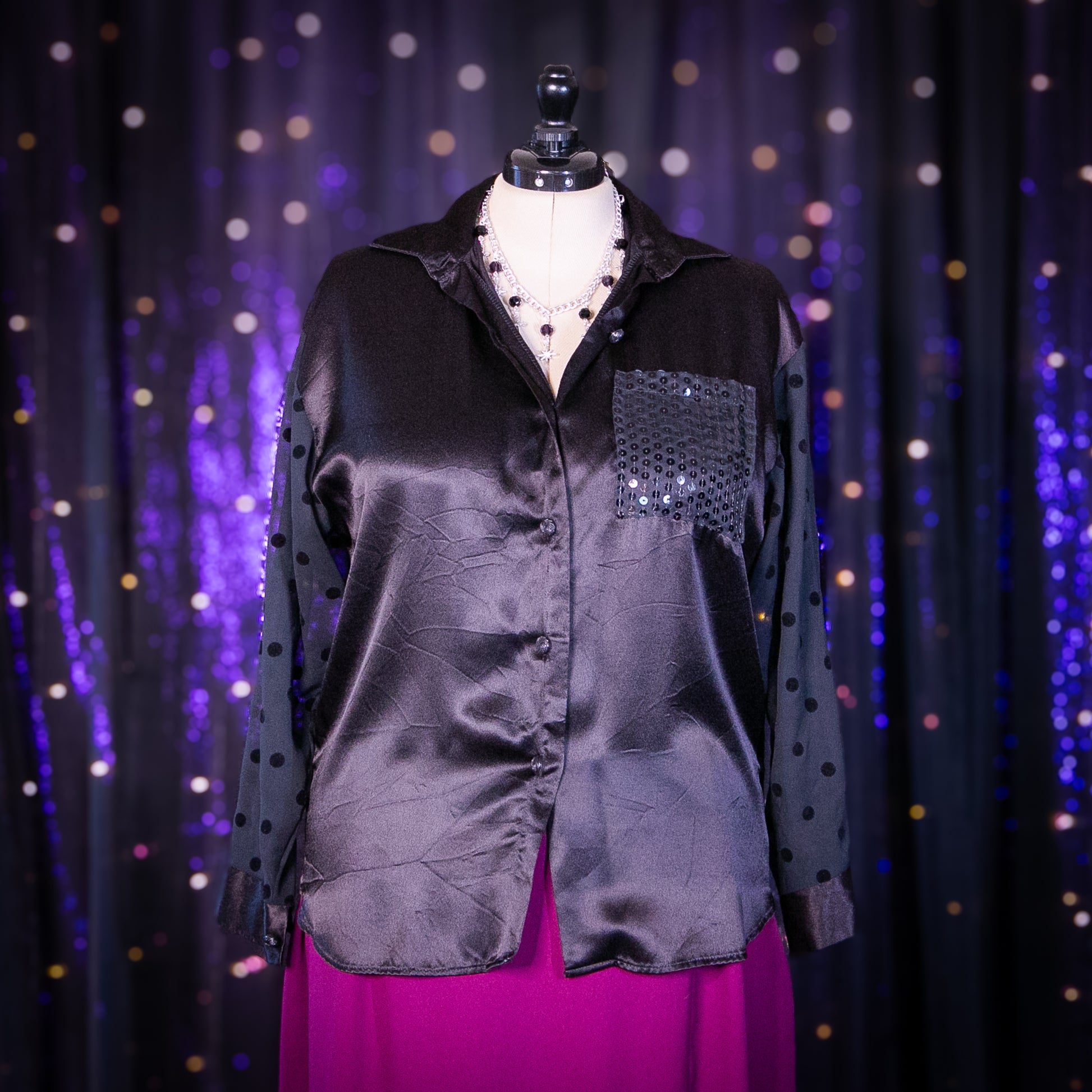 - Pattern: Solid with Velvet Flocked Polka Dot Sleeves