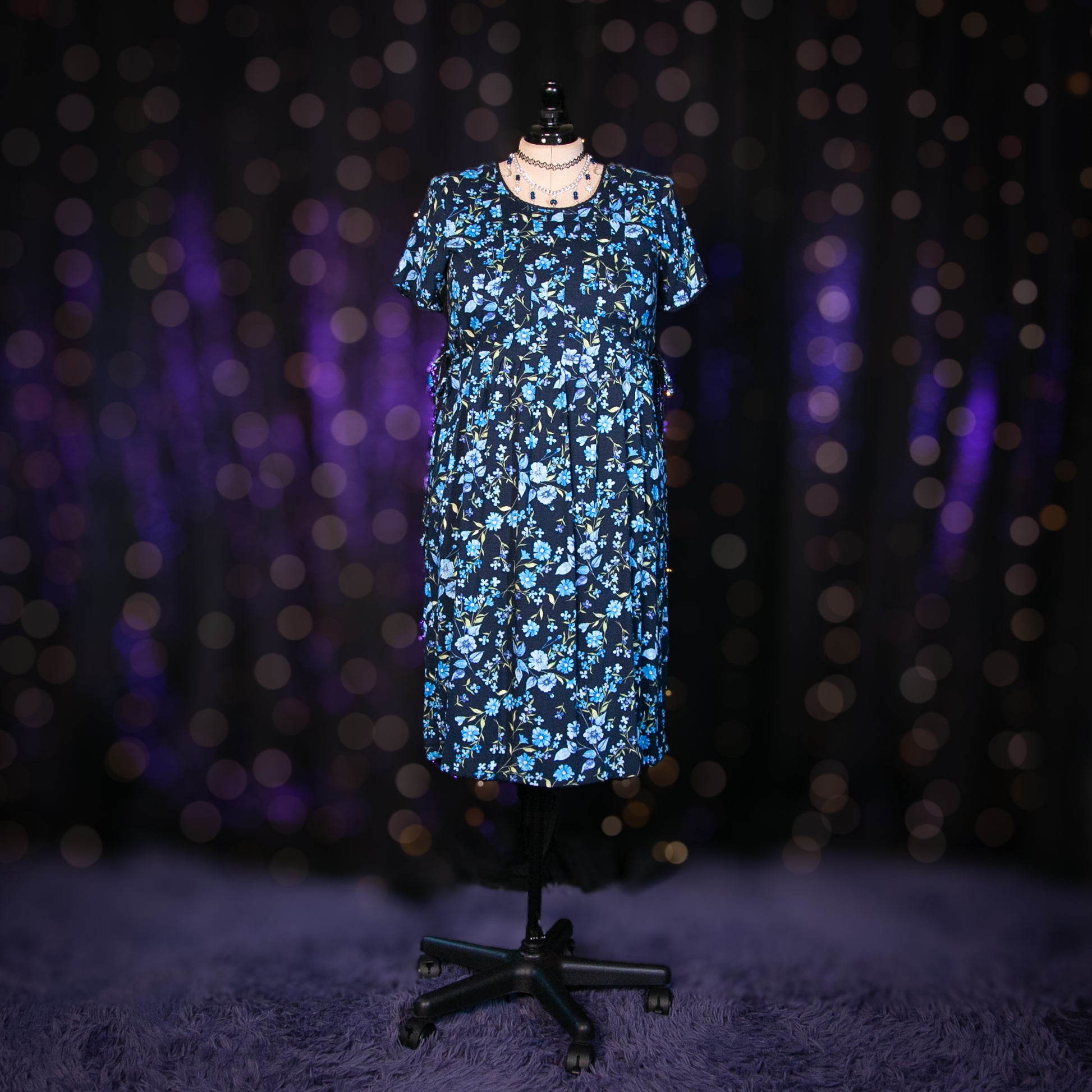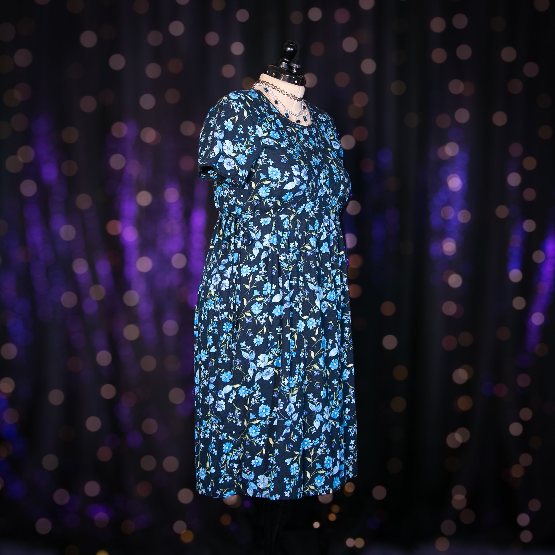 - Pattern: Navy Blue with Light Blue and Green Floral Print