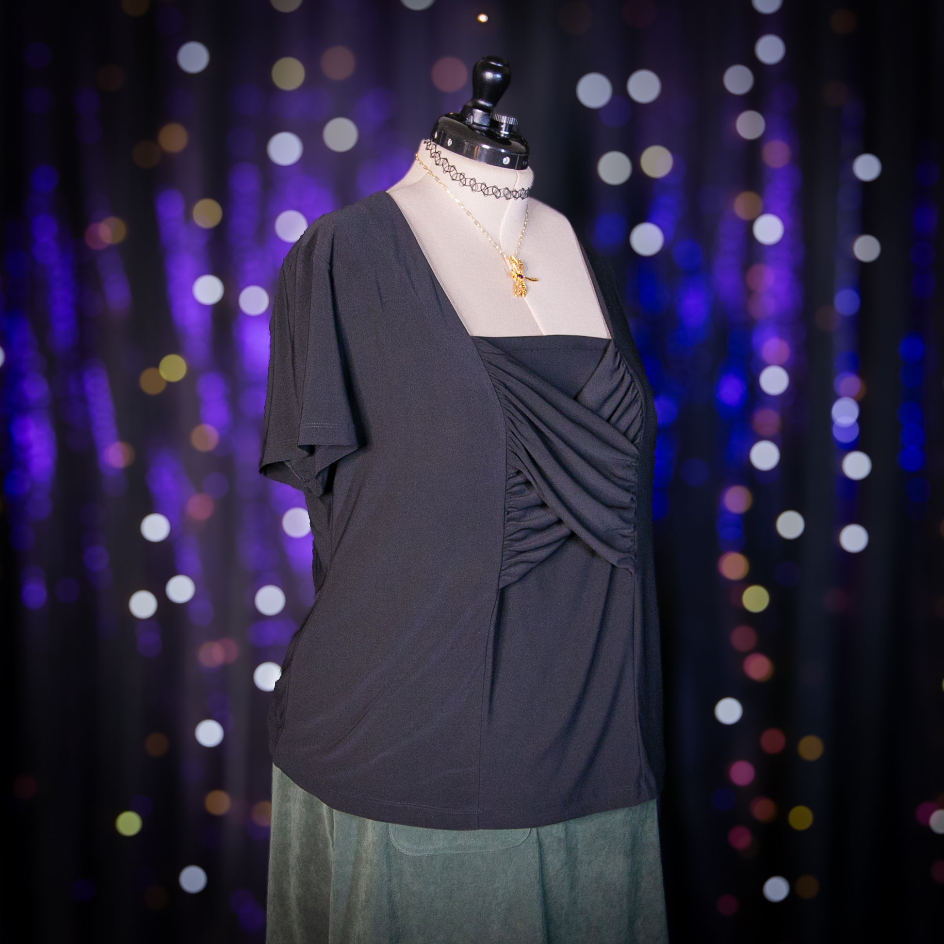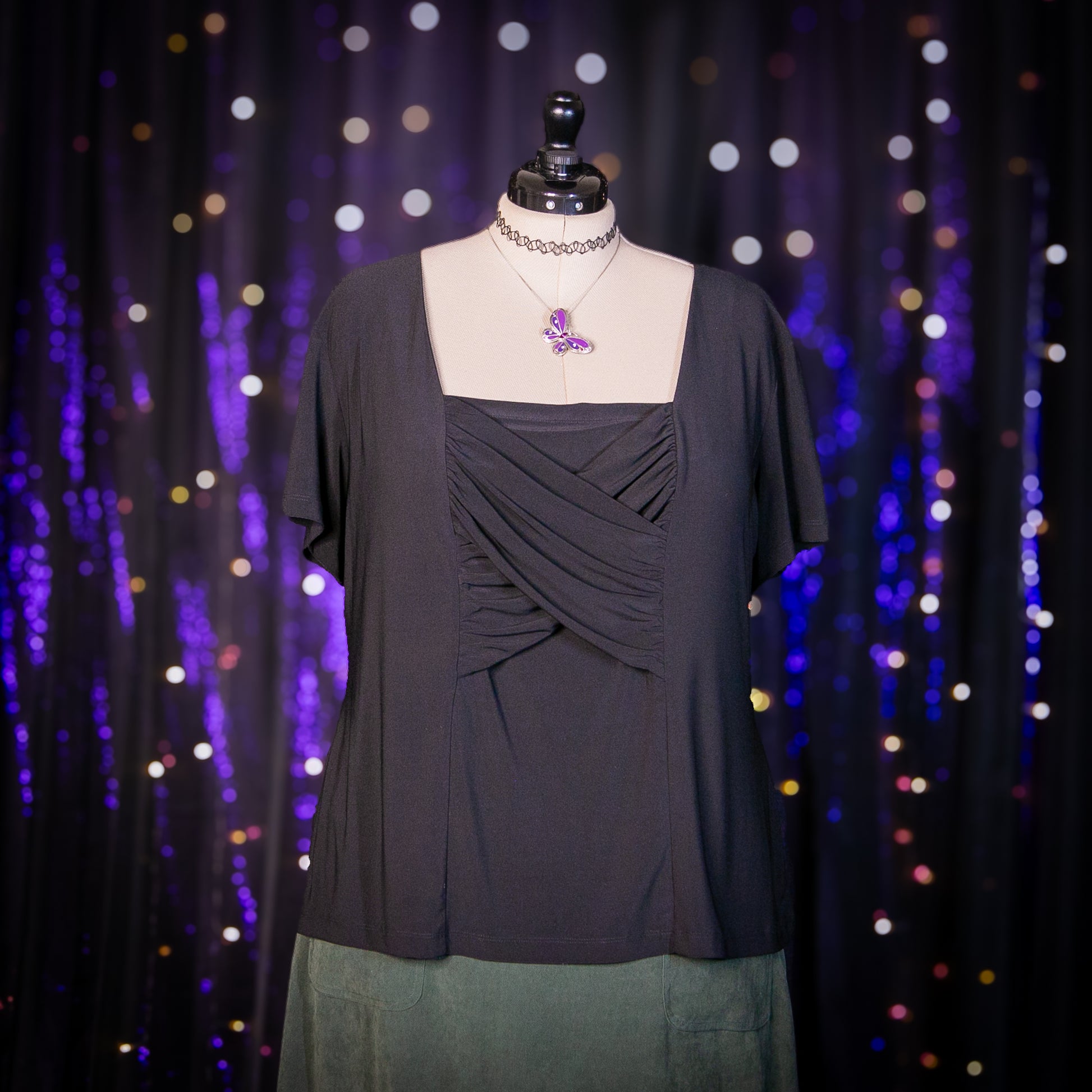 - Features: Stretchy; Ruched Cross Panel on Front