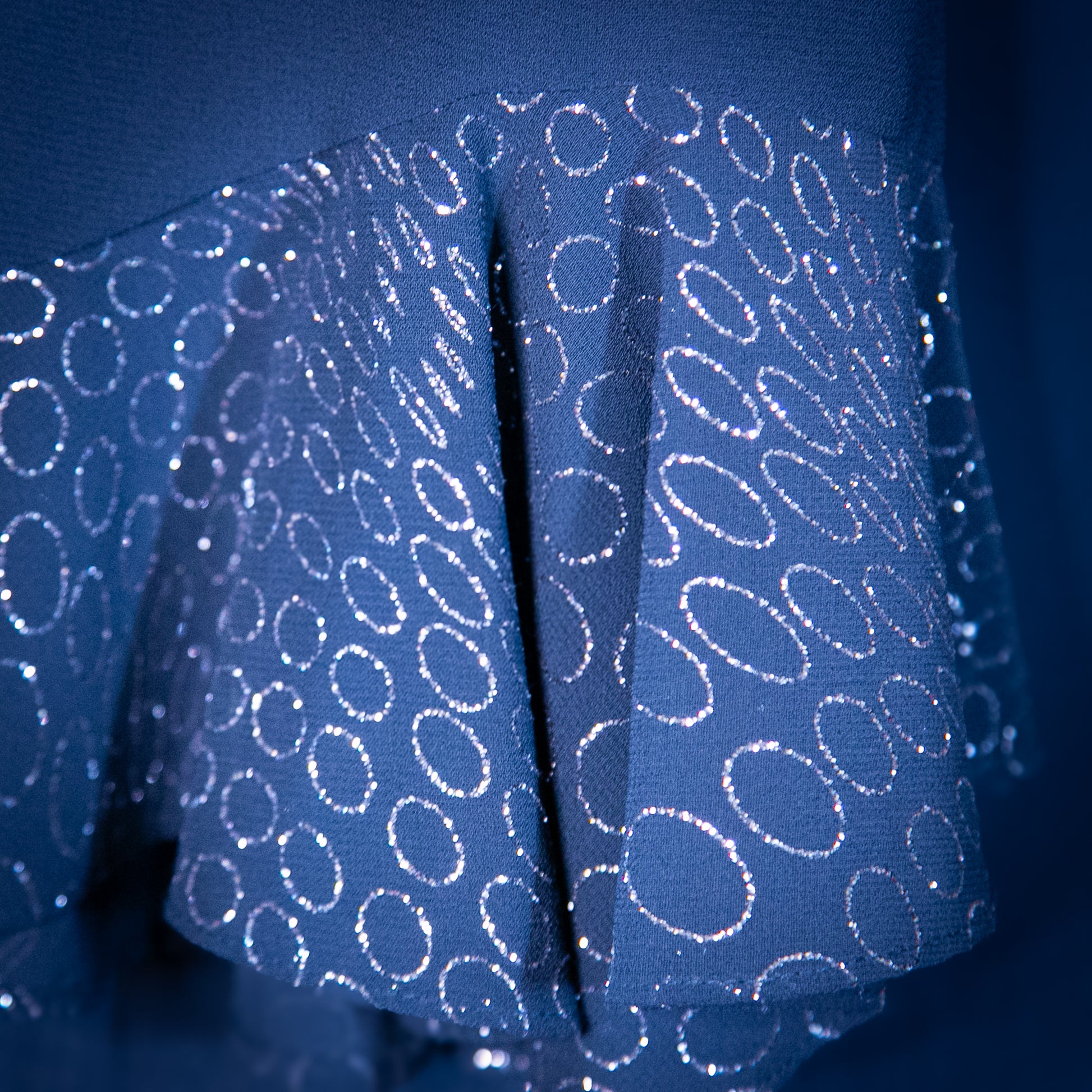 - Pattern: Solid with Silver Metallic Oval Polka Dot Cuffs and Side Pleat