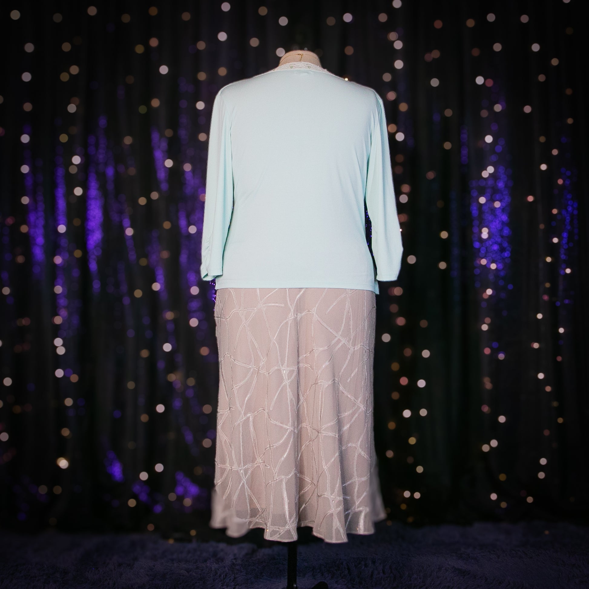 - Features: White Scalloped Lace Trim with Tiny Sequins and Beads; Ruched Sleeve Cuffs
