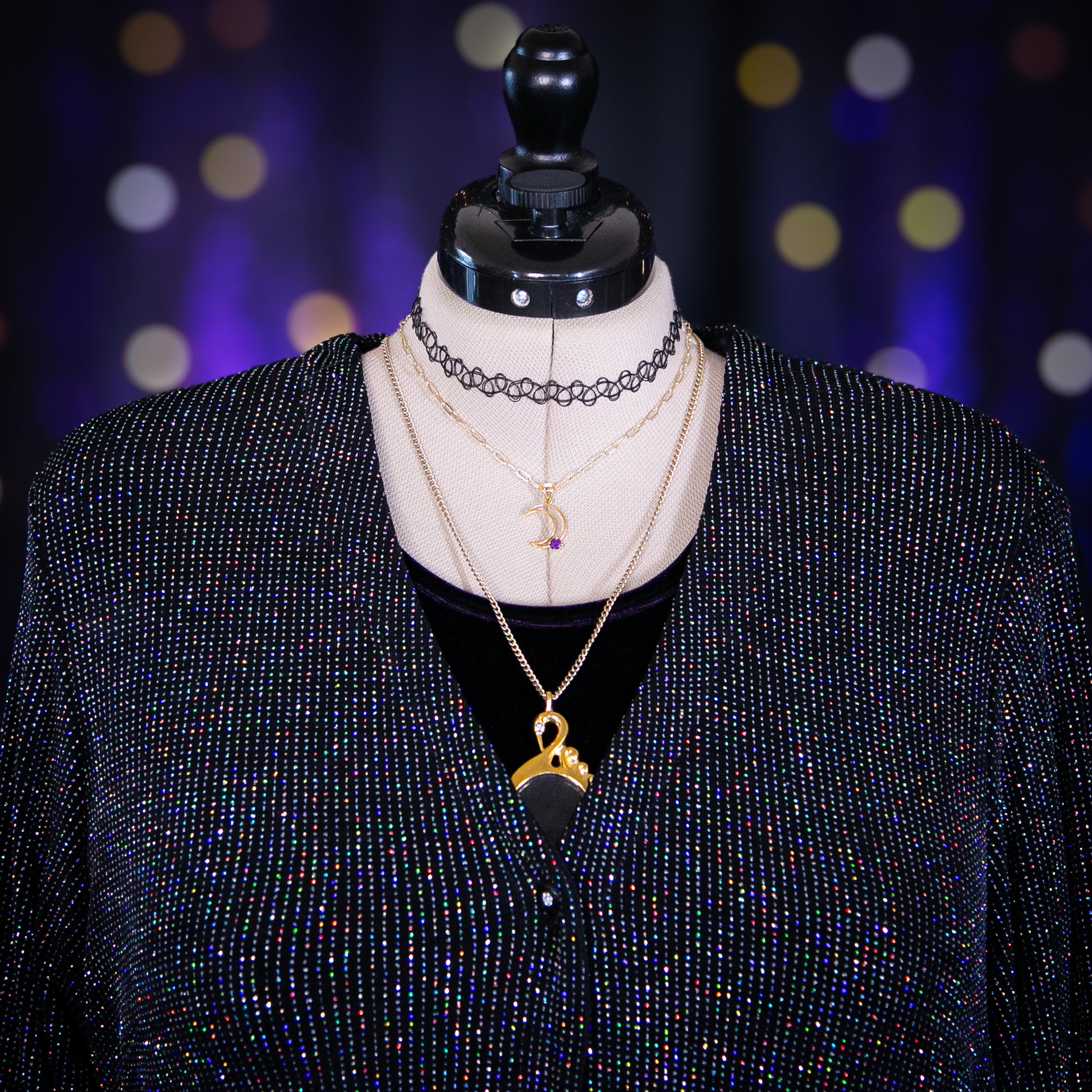 - Pattern: Black with Holographic Glitter Micro Dot Print
