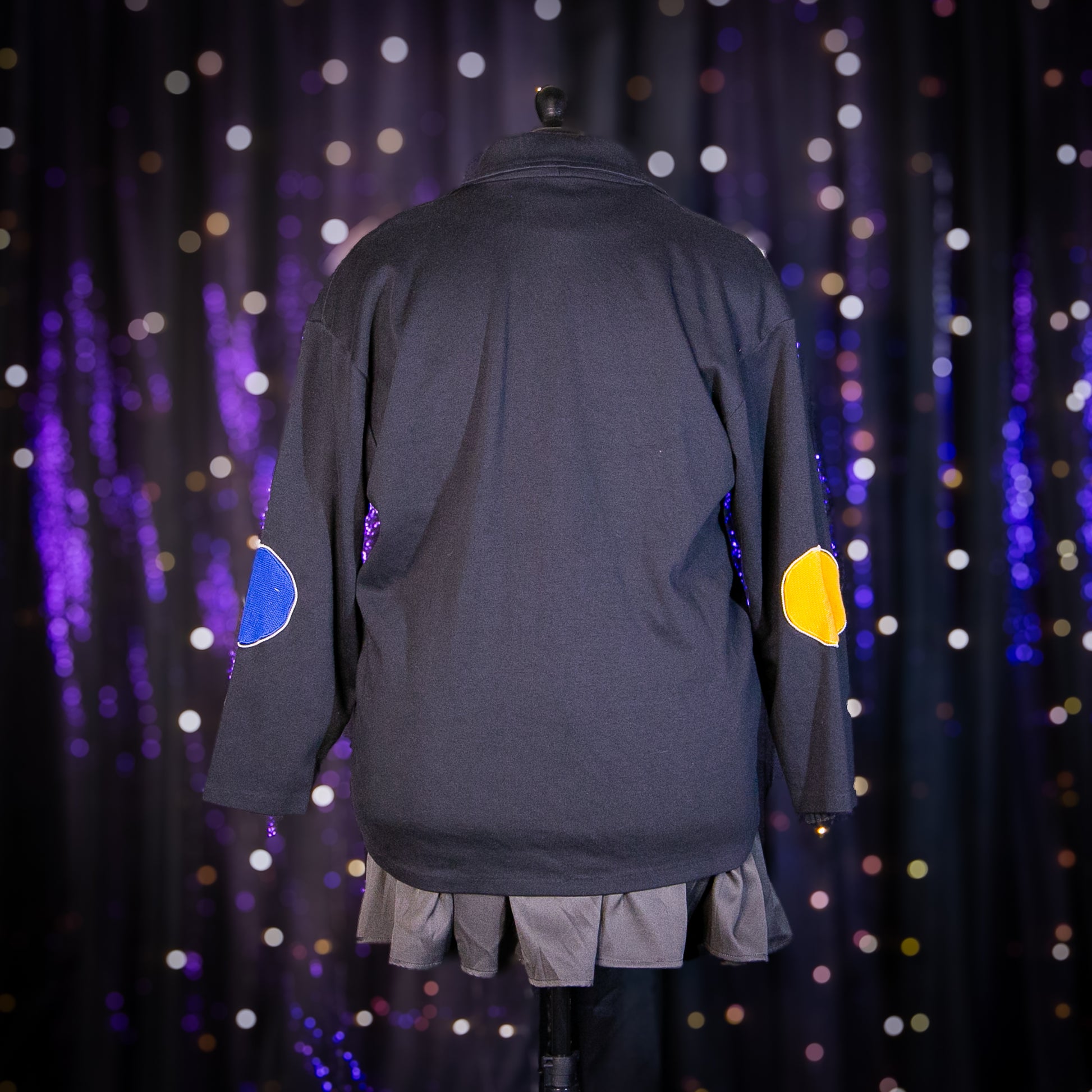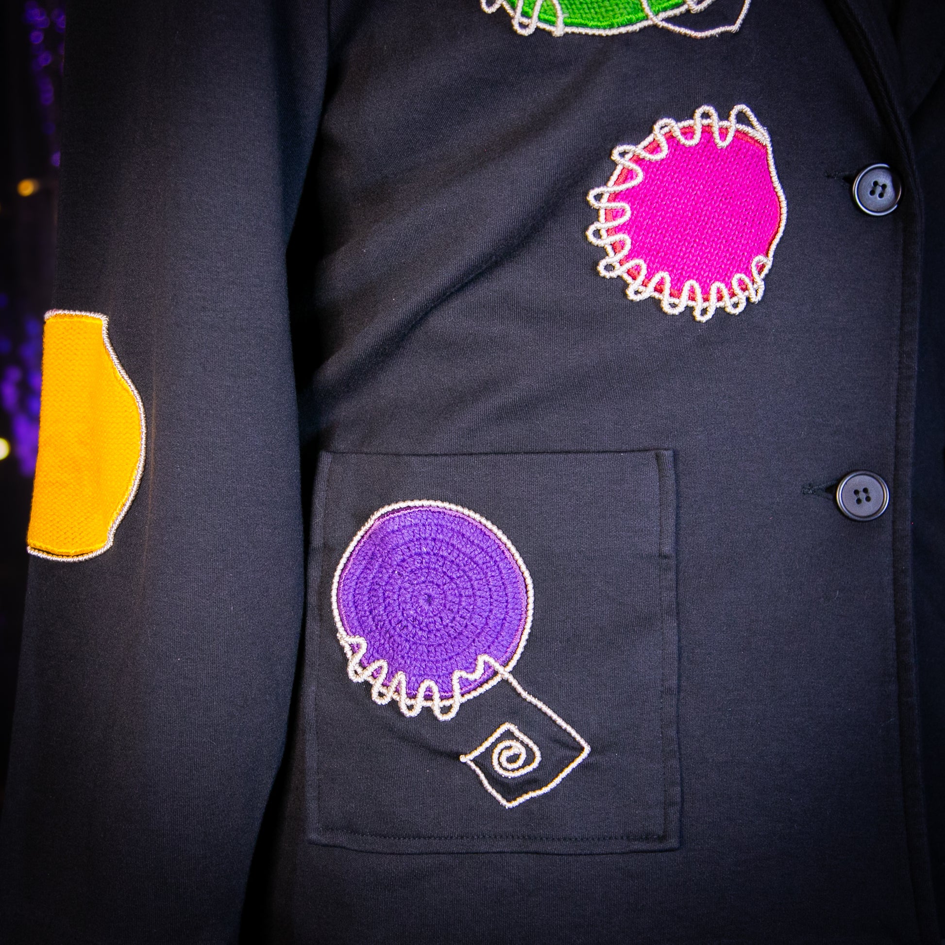 Vintage black blazer with bold rainbow spots that would make for a fun Fran Fine/The Nanny costume!