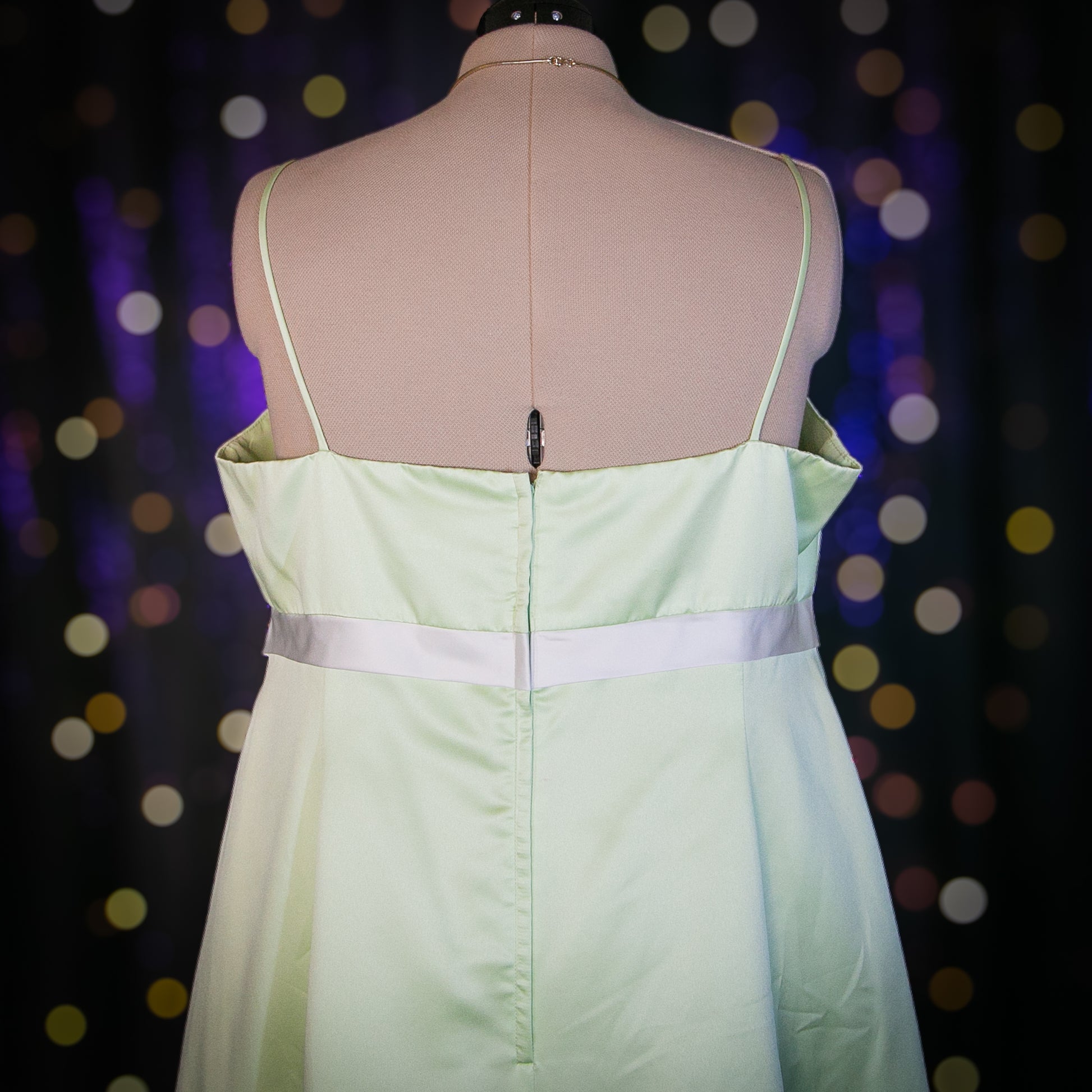 Long lime green ballgown perfect for a Princess and the Frog or Bridgerton-inspired look.
