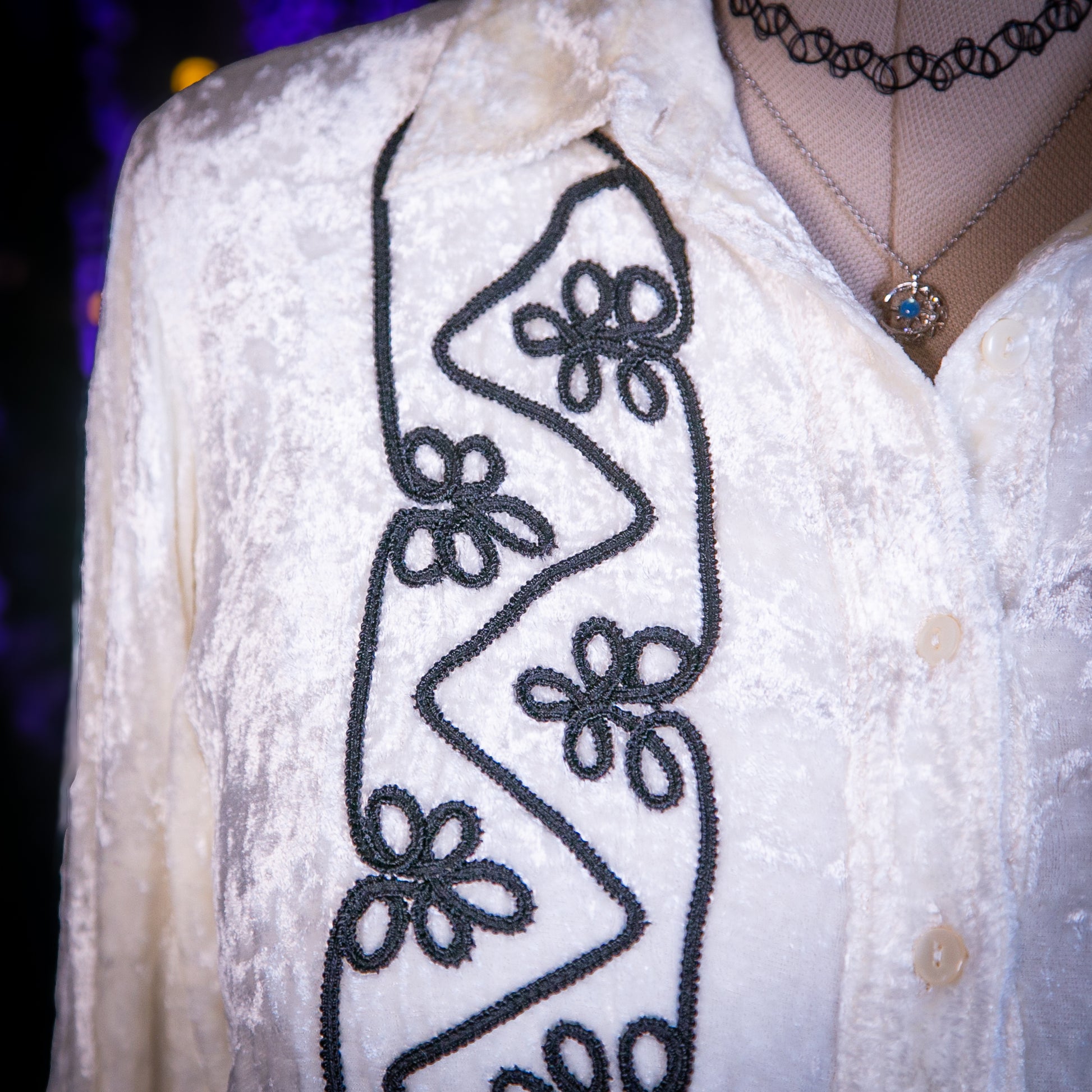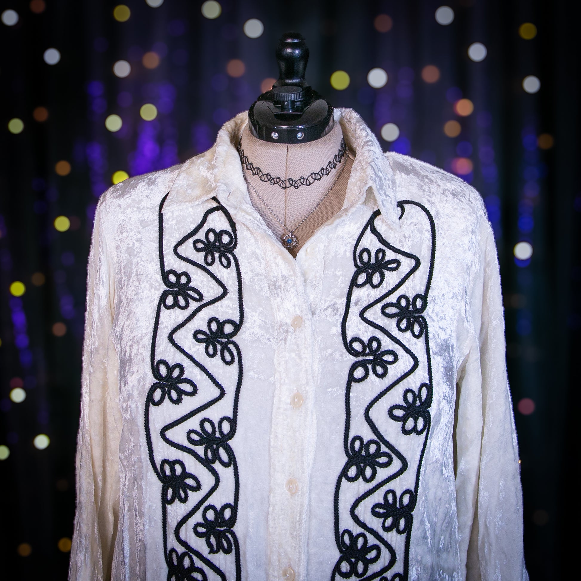 - Pattern: Black Scroll Embroidery