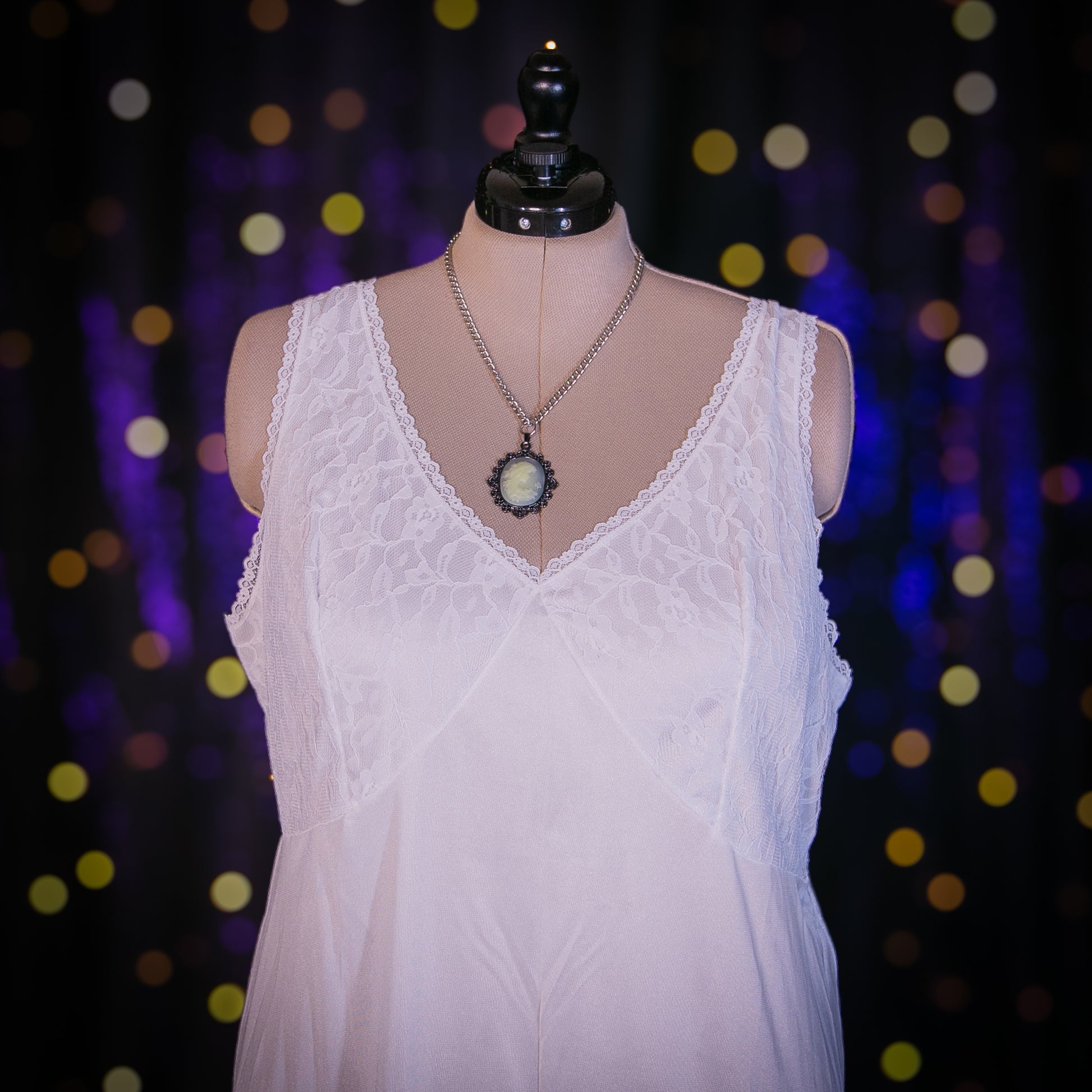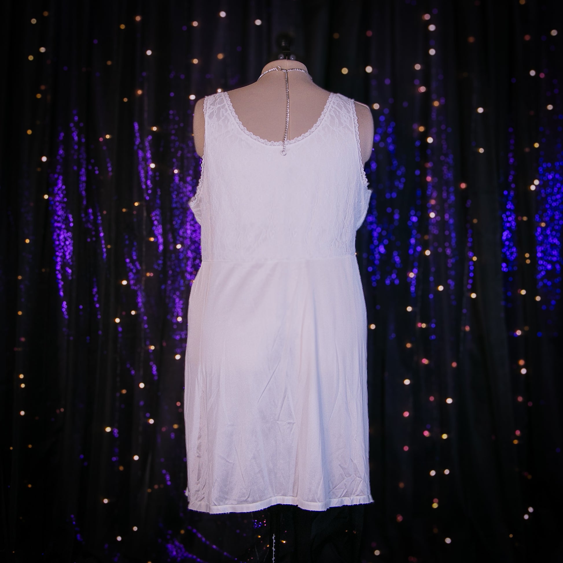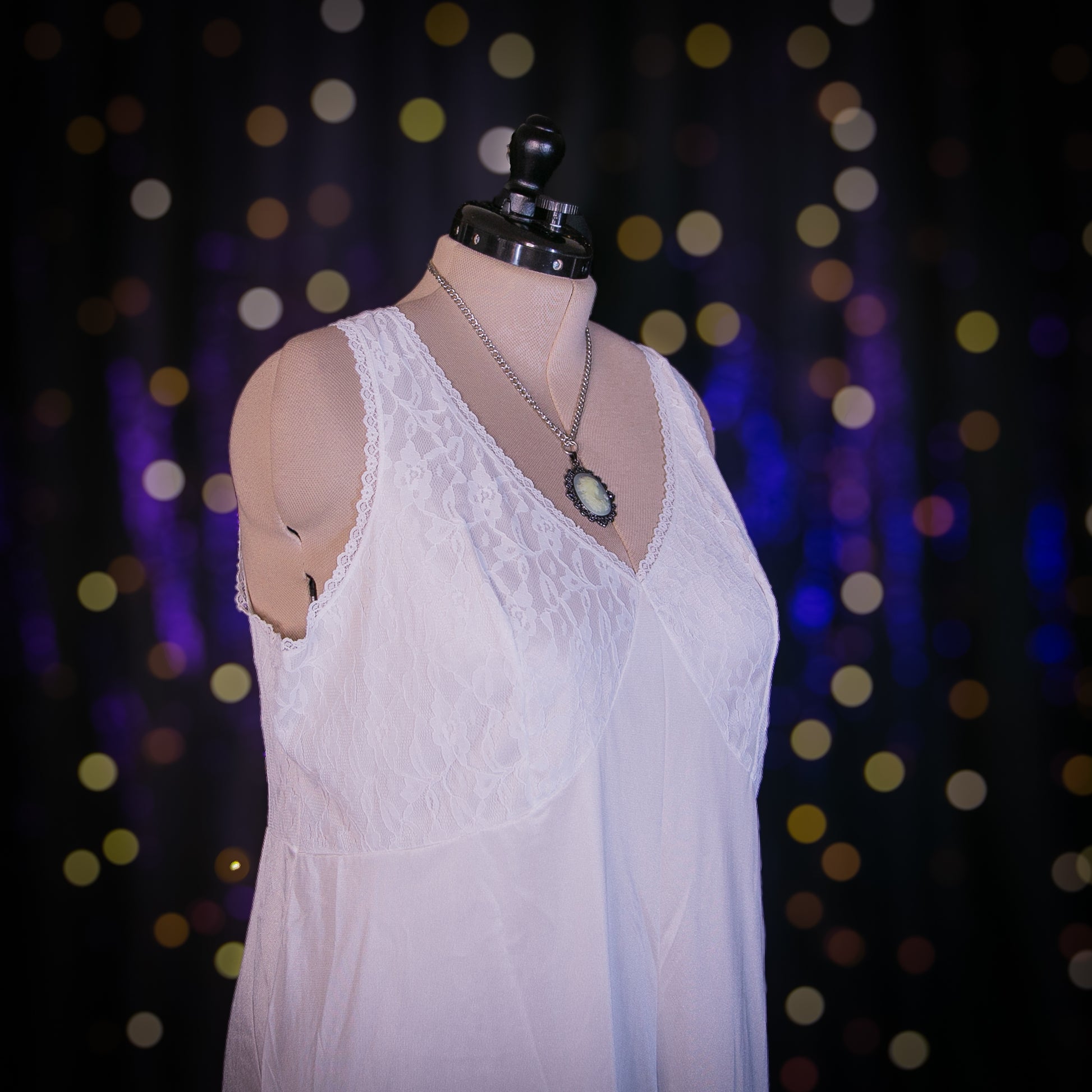 Vintage white knee length slip dress that's a cozy base for a ghost, angel, or fairy costume.