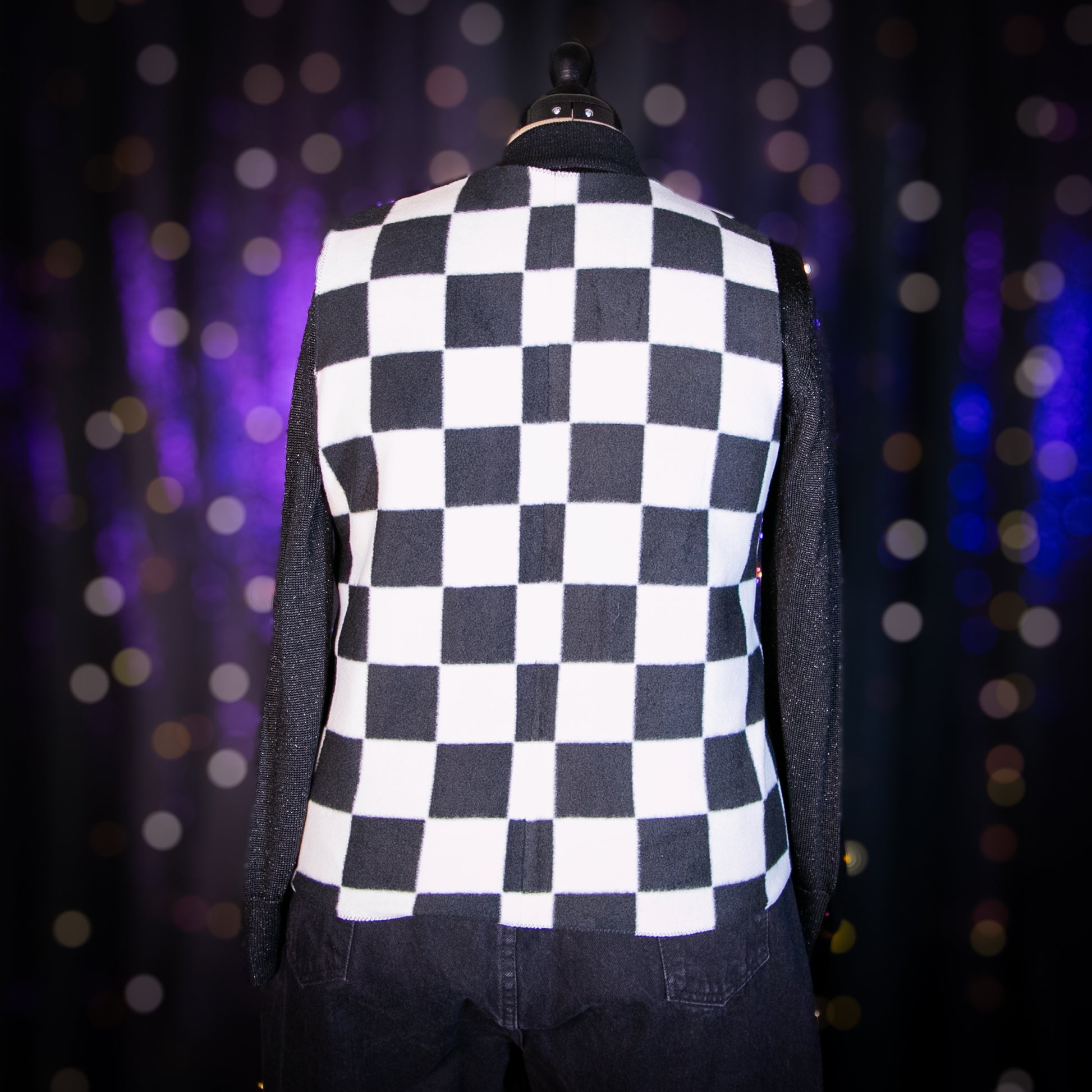 Black and white checkered vest that would make a super cute Wednesday Addams-inspired outfit.