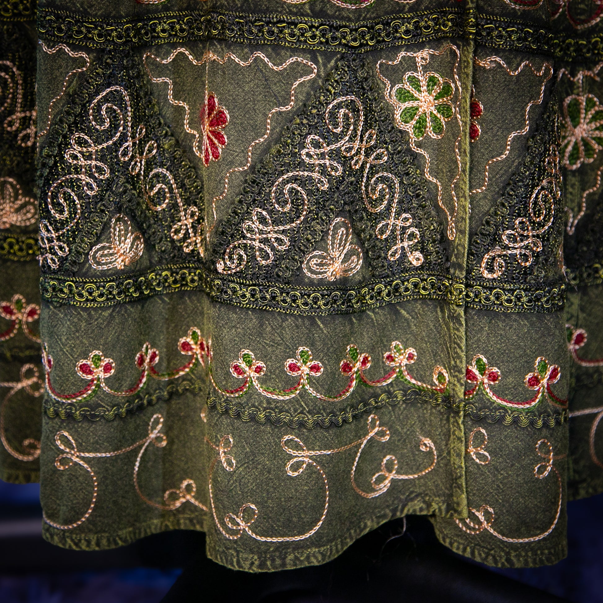 - Pattern: Gold and Maroon Red Floral and Scroll Embroidery